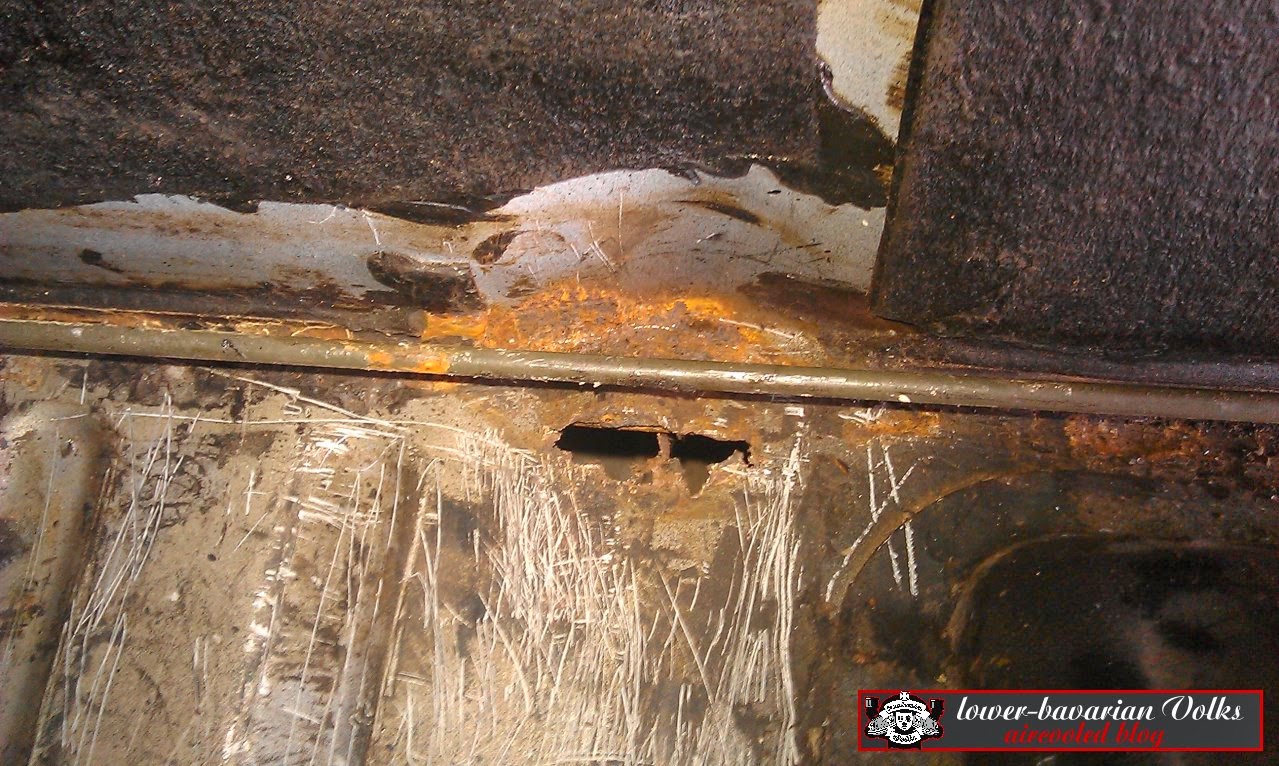 Nach dem Heraustrennen von Frontblech und Reserveradmulde war der Blick frei auf die verrotteten Endspitzen. Wollte diese erst noch rüber retten, was sich aber als Schmarrn erwies. Passenden Ersatz hatte ich noch rumliegen. Also raus mit dem Schrott! Demnächst wieder mehr, dann geht's vermutlich mit der hinteren rechten Seitenwand weiter.
